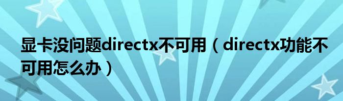 关于显卡没问题directx不可用,directx功能不可用怎么办这个很多人还不知道,今天菲菲来为大家解答以上的问题,现在让我们一起来看看吧!