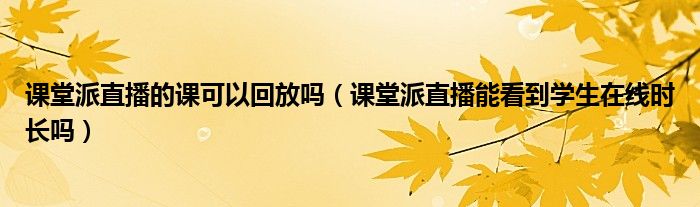 大家好,跳跳为你解答以上问题。课堂派直播的课可以回放吗,课堂派直播能看到学生在线时长吗这个问题很多人还不知道,现在让我们一起来看看吧!