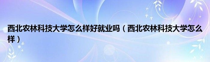 关于西北农林科技大学怎么样好就业吗,西北农林科技大学怎么样这个很多人还不知道,今天菲菲来为大家解答以上的问题,现在让我们一起来看看吧!
