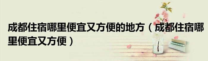 大家好,小晋来为大家解答以下问题,关于成都住宿哪里便宜又方便的地方,成都住宿哪里便宜又方便很多人还不知道,今天让我们一起来看看吧!