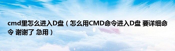 cmd里怎么进入D盘(怎么用CMD命令进入D盘 要详细命令 谢谢了 急用)