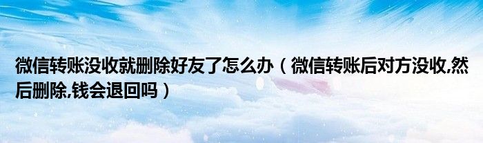 大家好,熊熊为你解答以上问题。微信转账没收就删除好友了怎么办,微信转账后对方没收,然后删除,钱会退回吗这个很多人还不知道,现在让我们一起来看看吧!