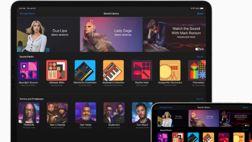 Apple宣布将扩展iPhone和iPad版GarageBand,以包含来自世界多位艺术家和制作人的新“声音包”,包括DuaLipa的BreakMyHeart和LadyGaga的FreeWoman。