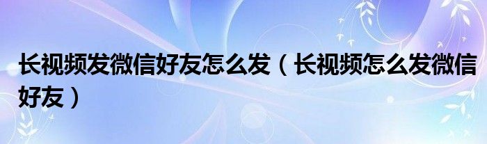 大家好,小晋来为大家解答以下问题,关于长视频发微信好友怎么发,长视频怎么发微信好友很多人还不知道,今天让我们一起来看看吧!