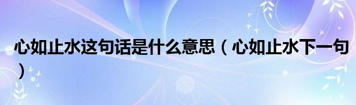 大家好,小晋来为大家解答以下问题,关于心如止水这句话是什么意思,心如止水下一句很多人还不知道,今天让我们一起来看看吧!
