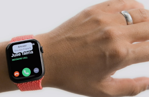在另一个例子中,手表上会出现一条快速消息,指示用户双握紧握以接听来电。