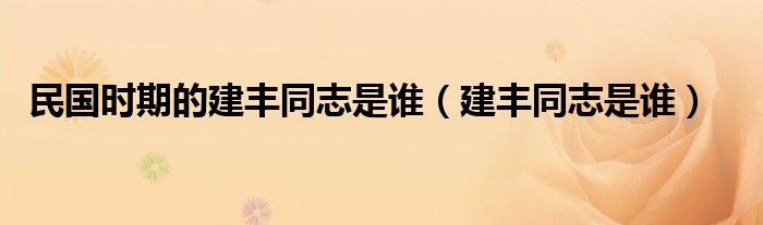 大家好,小晋来为大家解答以下问题,关于民国时期的建丰同志是谁,建丰同志是谁很多人还不知道,今天让我们一起来看看吧!