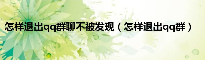 大家好,小晋来为大家解答以下问题,关于怎样退出qq群聊不被发现,怎样退出qq群很多人还不知道,今天让我们一起来看看吧!