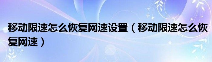 大家好,小晋来为大家解答以下问题,关于移动限速怎么恢复网速设置,移动限速怎么恢复网速很多人还不知道,今天让我们一起来看看吧!