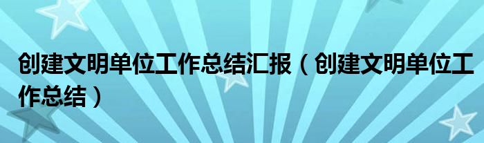 关于创建文明单位工作总结汇报,创建文明单位工作总结这个很多人还不知道,今天菲菲来为大家解答以上的问题,现在让我们一起来看看吧!