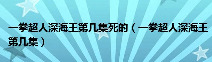 大家好,小晋来为大家解答以下问题,关于一拳超人深海王第几集死的,一拳超人深海王第几集很多人还不知道,今天让我们一起来看看吧!