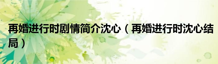大家好,小晋来为大家解答以下问题,关于再婚进行时剧情简介沈心,再婚进行时沈心结局很多人还不知道,今天让我们一起来看看吧!