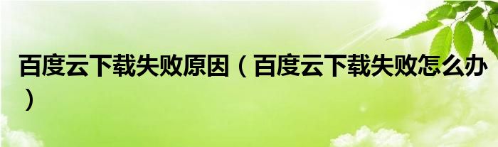 百度云下载失败原因(百度云下载失败怎么办)