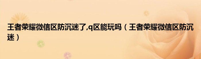 大家好,小晋来为大家解答以下问题,关于王者荣耀微信区防沉迷了,q区能玩吗,王者荣耀微信区防沉迷很多人还不知道,今天让我们一起来看看吧!