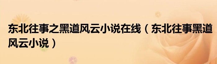 大家好,小晋来为大家解答以下问题,关于东北往事之黑道风云小说在线,东北往事黑道风云小说很多人还不知道,今天让我们一起来看看吧!