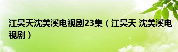 大家好,小晋来为大家解答以下问题,关于江昊天沈美溪电视剧23集,江昊天 沈美溪电视剧很多人还不知道,今天让我们一起来看看吧!