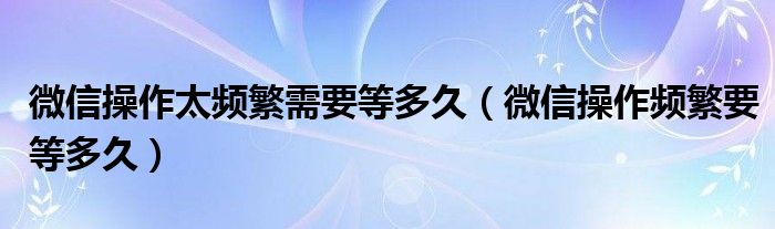 微信操作太频繁需要等多久(微信操作频繁要等多久)