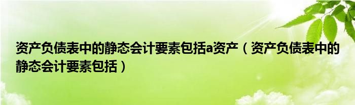 关于资产负债表中的静态会计要素包括a资产,资产负债表中的静态会计要素包括这个很多人还不知道,今天菲菲来为大家解答以上的问题,现在让我们一起来看看吧!