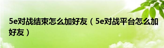 大家好,小晋来为大家解答以下问题,关于5e对战结束怎么加好友,5e对战平台怎么加好友很多人还不知道,今天让我们一起来看看吧!