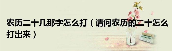 关于农历二十几那字怎么打,请问农历的二十怎么打出来这个很多人还不知道,今天菲菲来为大家解答以上的问题,现在让我们一起来看看吧!