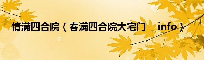 关于情满四合院,春满四合院大宅门 info这个很多人还不知道,今天菲菲来为大家解答以上的问题,现在让我们一起来看看吧!