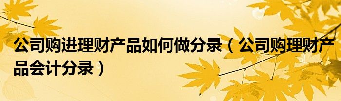 公司购进理财产品如何做分录(公司购理财产品会计分录)