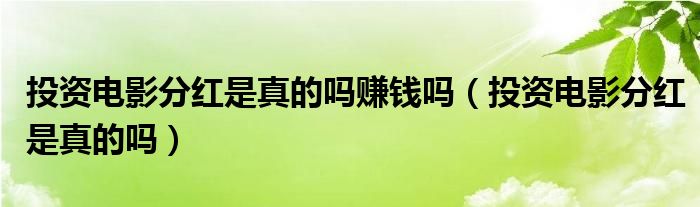 大家好,小晋来为大家解答以下问题,关于投资电影分红是真的吗赚钱吗,投资电影分红是真的吗很多人还不知道,今天让我们一起来看看吧!