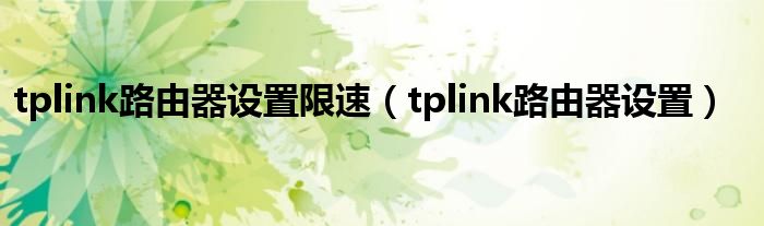 tplink路由器设置限速(tplink路由器设置)
