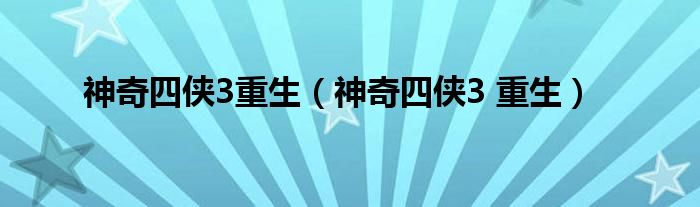 关于神奇四侠3重生,神奇四侠3 重生这个很多人还不知道,今天菲菲来为大家解答以上的问题,现在让我们一起来看看吧!