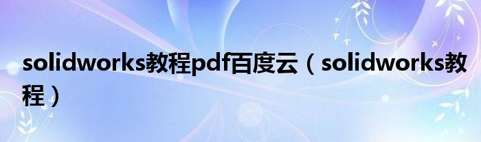 关于solidworks教程pdf百度云,solidworks教程这个很多人还不知道,今天菲菲来为大家解答以上的问题,现在让我们一起来看看吧!