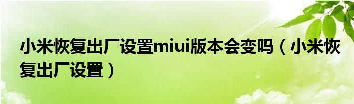 大家好,小晋来为大家解答以下问题,关于小米恢复出厂设置miui版本会变吗,小米恢复出厂设置很多人还不知道,今天让我们一起来看看吧!
