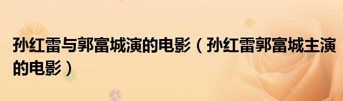 大家好,小晋来为大家解答以下问题,关于孙红雷与郭富城演的电影,孙红雷郭富城主演的电影很多人还不知道,今天让我们一起来看看吧!