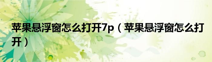 大家好,小晋来为大家解答以下问题,关于苹果悬浮窗怎么打开7p,苹果悬浮窗怎么打开很多人还不知道,今天让我们一起来看看吧!