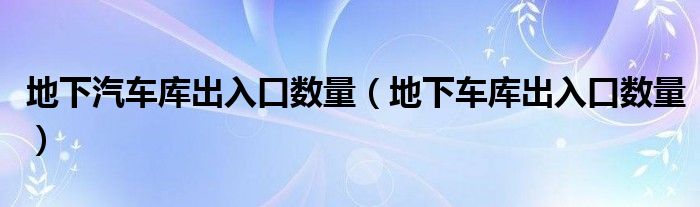 关于地下汽车库出入口数量,地下车库出入口数量这个很多人还不知道,今天菲菲来为大家解答以上的问题,现在让我们一起来看看吧!