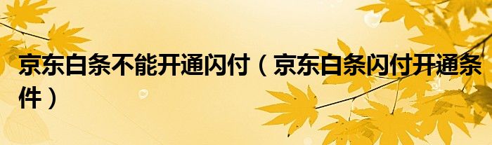 京东白条不能开通闪付(京东白条闪付开通条件)