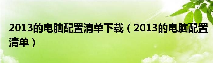 关于2013的电脑配置清单下载,2013的电脑配置清单这个很多人还不知道,今天菲菲来为大家解答以上的问题,现在让我们一起来看看吧!