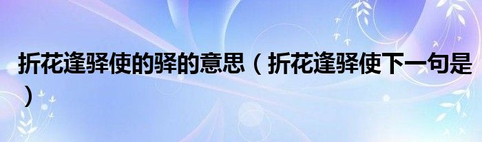 大家好,小晋来为大家解答以下问题,关于折花逢驿使的驿的意思,折花逢驿使下一句是很多人还不知道,今天让我们一起来看看吧!