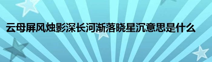 关于云母屏风烛影深长河渐落晓星沉意思是什么这个很多人还不知道,今天菲菲来为大家解答以上的问题,现在让我们一起来看看吧!
