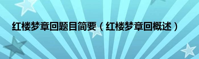 关于红楼梦章回题目简要,红楼梦章回概述这个很多人还不知道,今天菲菲来为大家解答以上的问题,现在让我们一起来看看吧!