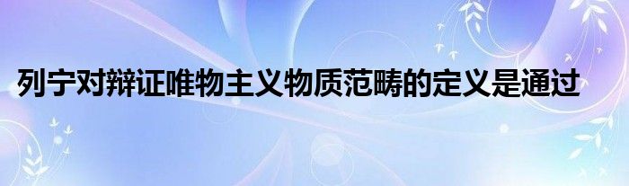 1、列宁的关于物质的定义: “物质是标志客观实在的哲学范畴,这种客观实在是人通过感知感觉的,它不依赖于我们的感觉而存在,为我们的感觉所复写、摄影、反映。”《列宁选集》,第2卷,128页 2、列宁物质定义的意义 列宁对哲学物质的科学规定,在理论上具有重大意义,集中表现在三个方面: (a)它与唯心主义和二元论划清了界限 (b)它与不可知论划清了界限 (c)它克服了旧唯物主义观的缺陷 (d) 它是马克思主义理论体系的基石 1、列宁的关于物质的定义: “物质是标志客观实在的哲学范畴,这种客观实在是人通过感知感觉的,它不依赖于我们的感觉而存在,为我们的感觉所复写、摄影、反映。”《列宁选集》,第2卷,128页 列宁第一次提出了“客观实在”这个概念。列宁物质定义有四层含义: 其一,物质概念是标志客观实在的哲学范畴。形式上是主观的,但反映的对象是客观实在性,是抽象的物质概念,这样就使辩证唯物主义物质概念与朴素唯物主义、形而上学唯物主义及自然科学的物质结构理论区别开来; 其二,这种客观实在是人通过感觉感知的,这就与客观唯心主义划清了界限;客观唯心主义也说有一种客观实在,但这种客观存在但不能被人的感觉所感知,如神,是不能为人的感觉所感知 其三,这种客观实在不依赖于我们的感觉而存在,这就与主观唯心主义划清了界限;主观唯心主义也有一种客观实在,但是他们认为感觉是第一性的,主观产生了客观实在 其四,这种客观实在能被意识所反映。这与不可知论划清了界限。能够被人们所认识。如果有一种存在不能被人们所认识,那么他就不是真正的客观实在 2、列宁物质定义的意义 列宁对哲学物质的科学规定,在理论上具有重大意义,集中表现在三个方面: (a)它与唯心主义和二元论划清了界限 列宁的物质定义,从物质和意识的矛盾关系出发,指出了物质对意识的根源性和独立性,以及意识对物质的依赖性和派生性,坚持了彻底的唯物主义一元论的原则,从而与唯心主义和二元论划清了界限. (b)它与不可知论划清了界限 列宁的物质定义表明:物质并非不可知的"自在之物",而是通过人的感觉感知的,是人的认识可以反映的客观实在,这就从根本上与不可知论划清了界限. (c)它克服了旧唯物主义观的缺陷 列宁的物质定义的突出特点是:指出了"客观实在性"是物质的唯一特性,从而把哲学的物质概念同自然科学的物质结构以及具体的物质形态区别开来,克服了旧唯物主义把哲学物质混同于具体的物质形态或物质的缺陷. (d) 它是马克思主义理论体系的基石 列宁的物质定义在整个马克思主义理论体系中具有重要作用:它体现了自然观和历史观的统一;体现了唯物论和辩证法的统一;体现了本体论和认识论的统一。
