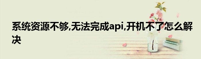 关于系统资源不够,无法完成api,开机不了怎么解决这个很多人还不知道,今天菲菲来为大家解答以上的问题,现在让我们一起来看看吧!