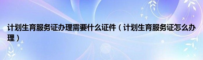 关于计划生育服务证办理需要什么证件,计划生育服务证怎么办理这个很多人还不知道,今天菲菲来为大家解答以上的问题,现在让我们一起来看看吧!