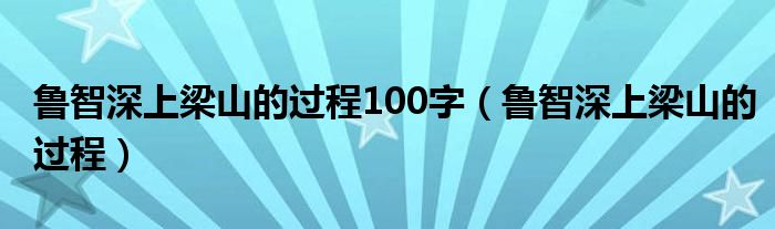 关于鲁智深上梁山的过程100字,鲁智深上梁山的过程这个很多人还不知道,今天菲菲来为大家解答以上的问题,现在让我们一起来看看吧!