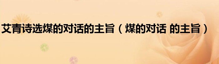 关于艾青诗选煤的对话的主旨,煤的对话 的主旨这个很多人还不知道,今天菲菲来为大家解答以上的问题,现在让我们一起来看看吧!