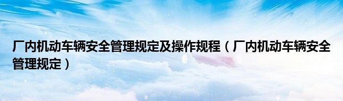 关于厂内机动车辆安全管理规定及操作规程,厂内机动车辆安全管理规定这个很多人还不知道,今天菲菲来为大家解答以上的问题,现在让我们一起来看看吧!