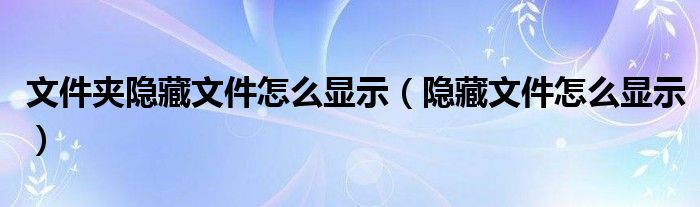关于文件夹隐藏文件怎么显示,隐藏文件怎么显示这个很多人还不知道,今天菲菲来为大家解答以上的问题,现在让我们一起来看看吧!
