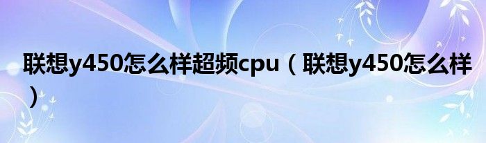 大家好,来宝来为大家解答以下问题,联想y450怎么样超频cpu,联想y450怎么样很多人还不知道,今天让我们一起来看看吧!