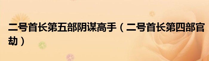 二号首长第五部阴谋高手(二号首长第四部官劫)