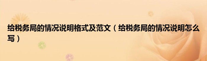 关于给税务局的情况说明格式及范文,给税务局的情况说明怎么写这个很多人还不知道,今天菲菲来为大家解答以上的问题,现在让我们一起来看看吧!