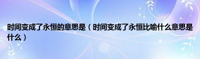 关于时间变成了永恒的意思是,时间变成了永恒比喻什么意思是什么这个很多人还不知道,今天菲菲来为大家解答以上的问题,现在让我们一起来看看吧!